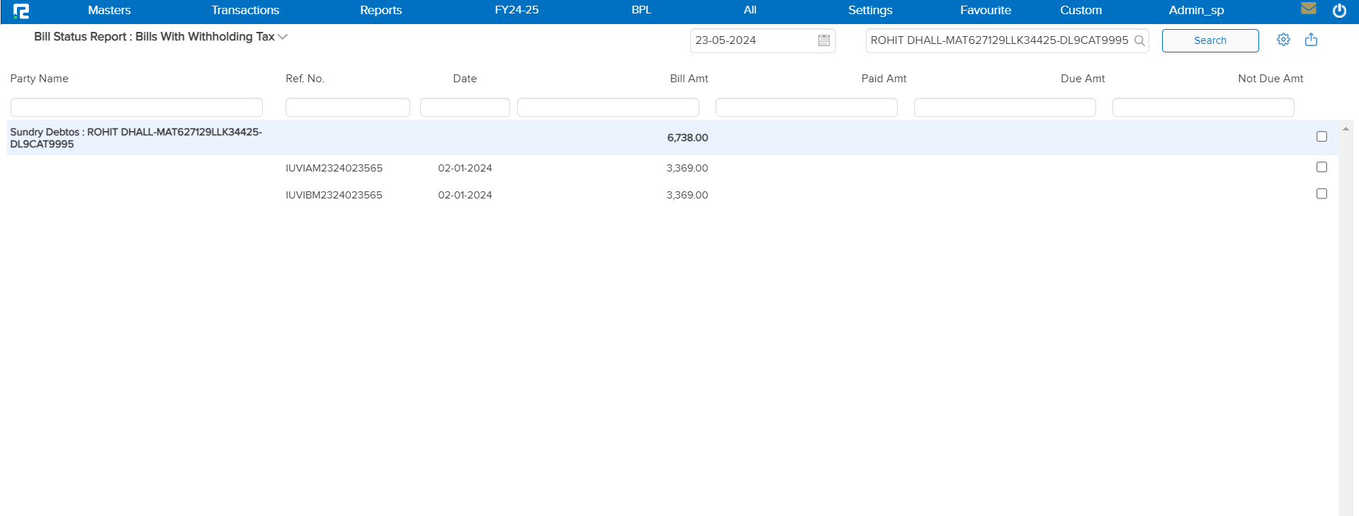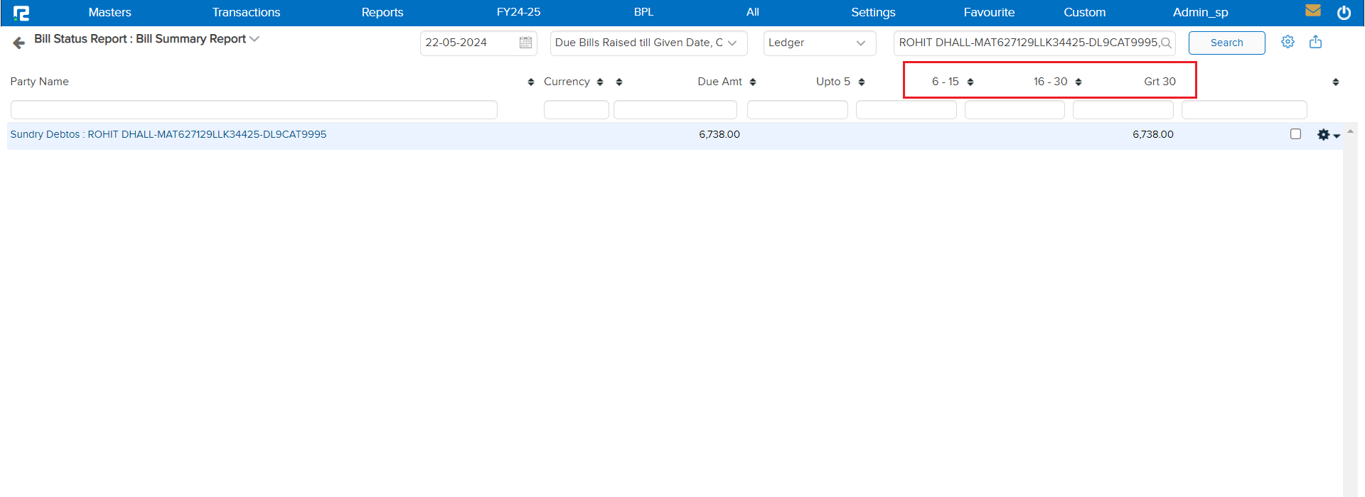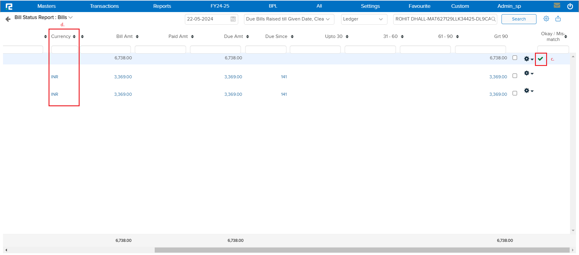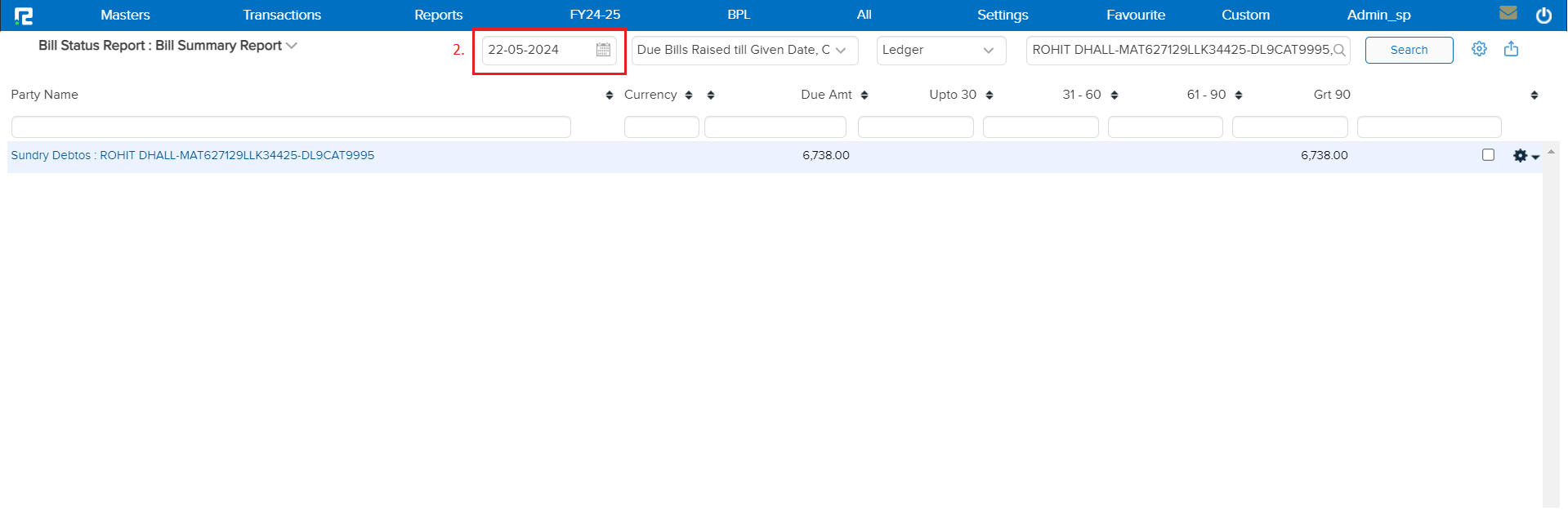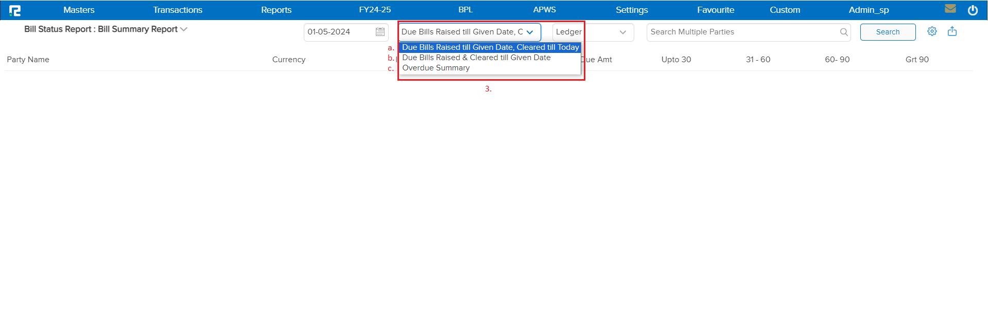 a. Due Bills Raised Till Given Date, Cleared Till Today – This filter will be set to show bills with the consolidated value that have been raised and cleared up to the current date.
