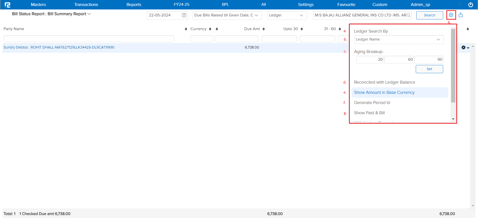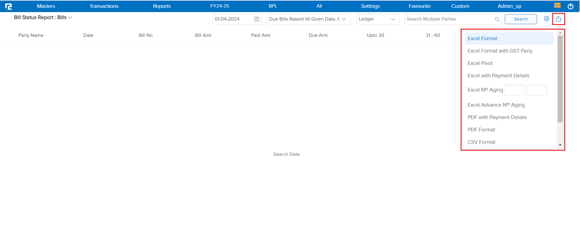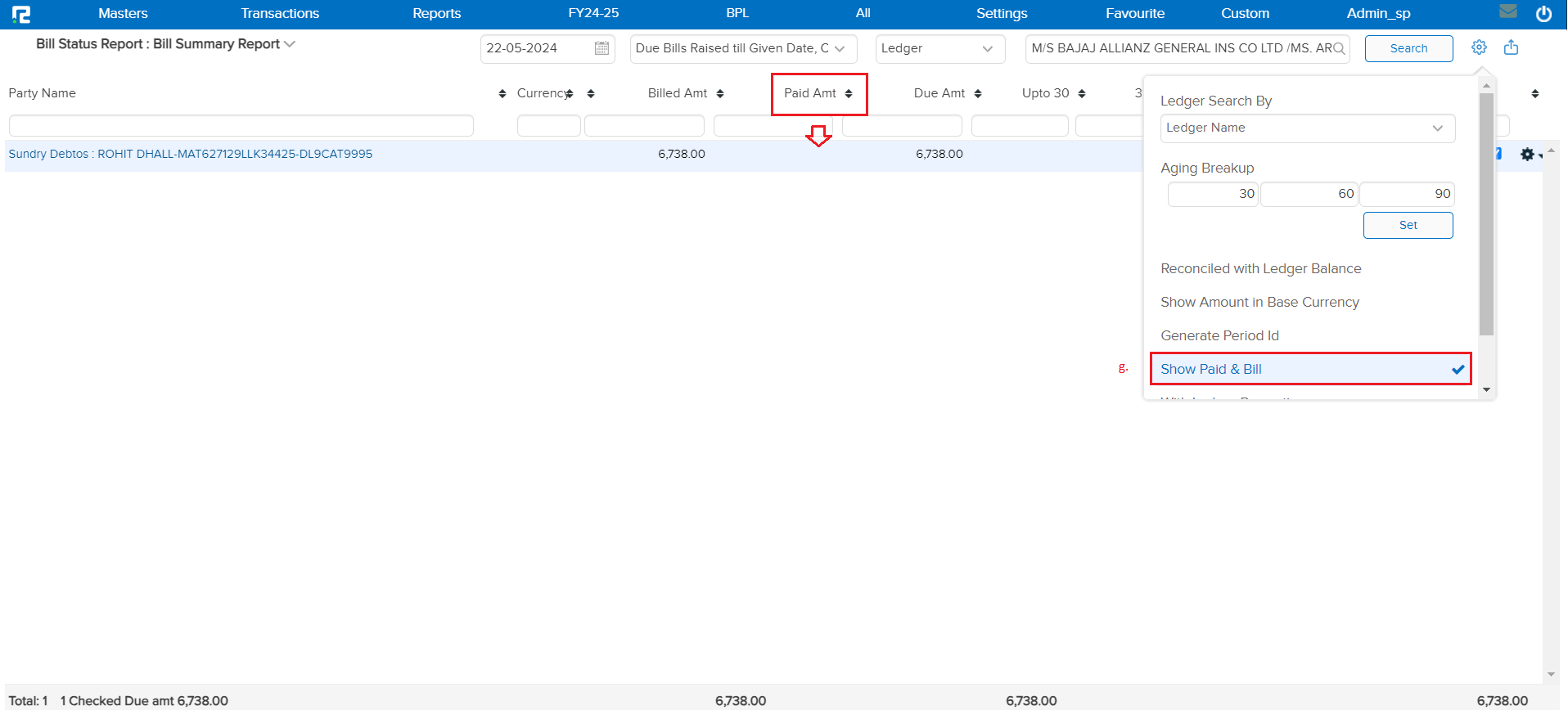 f. Show Paid & Bill: This feature includes both paid and unpaid bills in the report. This gives a comprehensive view of all transactions, not just the outstanding ones.
