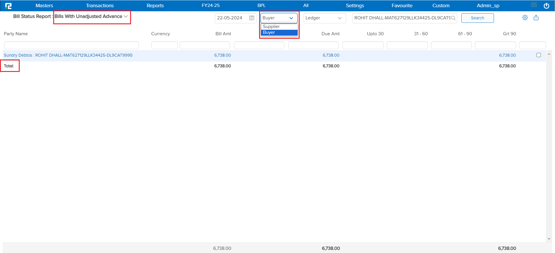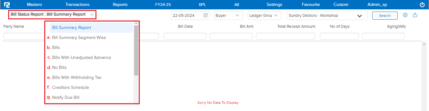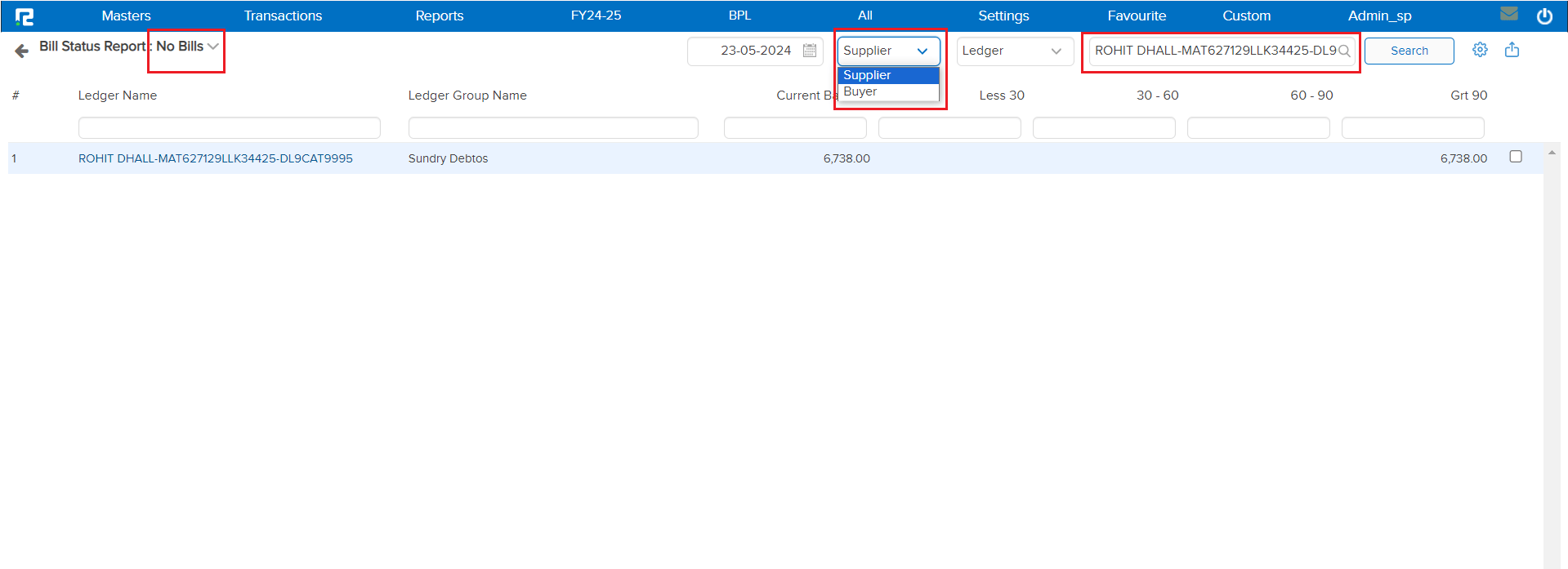 In this report by selecting the Supplier or Buyer under the option you can identify the accounts or entities for which no bills have been issued.