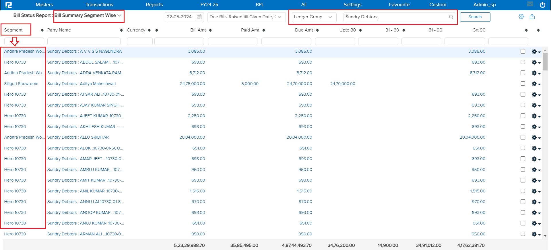 This report breaks down the bill summary into “Segment-wise” receivable, payable, and outstanding amounts. This detailed segmentation aids in analyzing billing data for more comprehensive financial insights.