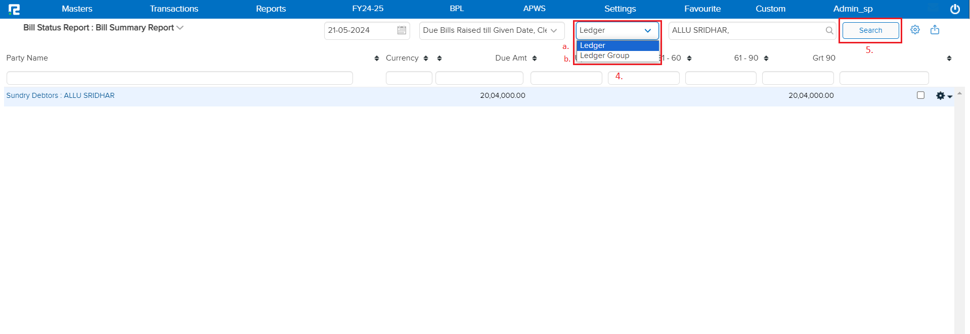 5. Search: Search and Select the ledger or ledger group name.