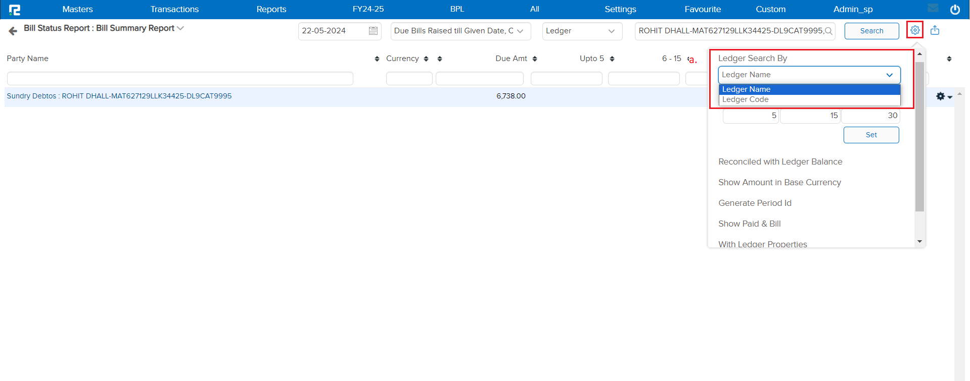 a. Ledger Search By: You can view the report by using both the available option “Ledger Name or the Ledger Code”.