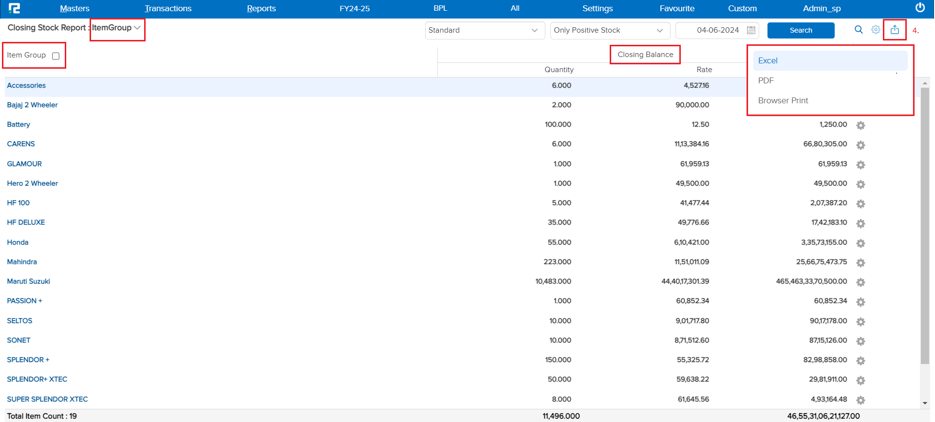 Closing Stock Report