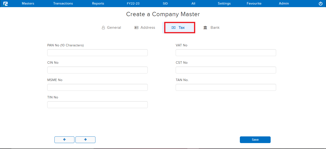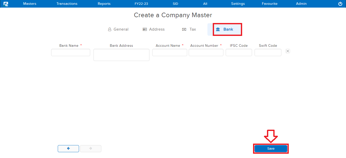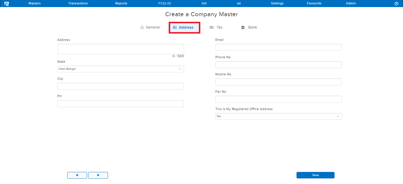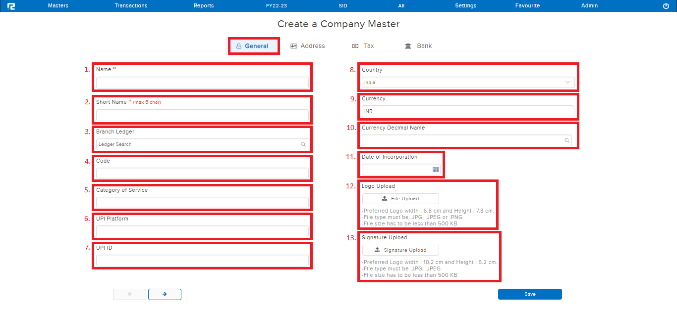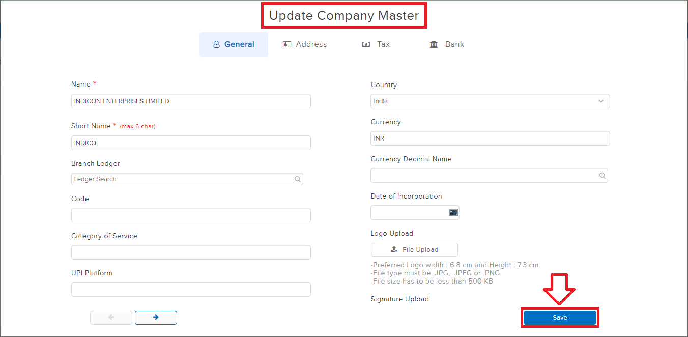 STEP 3: Once the above details have been filled in, CLICK on “SAVE” to create the company.