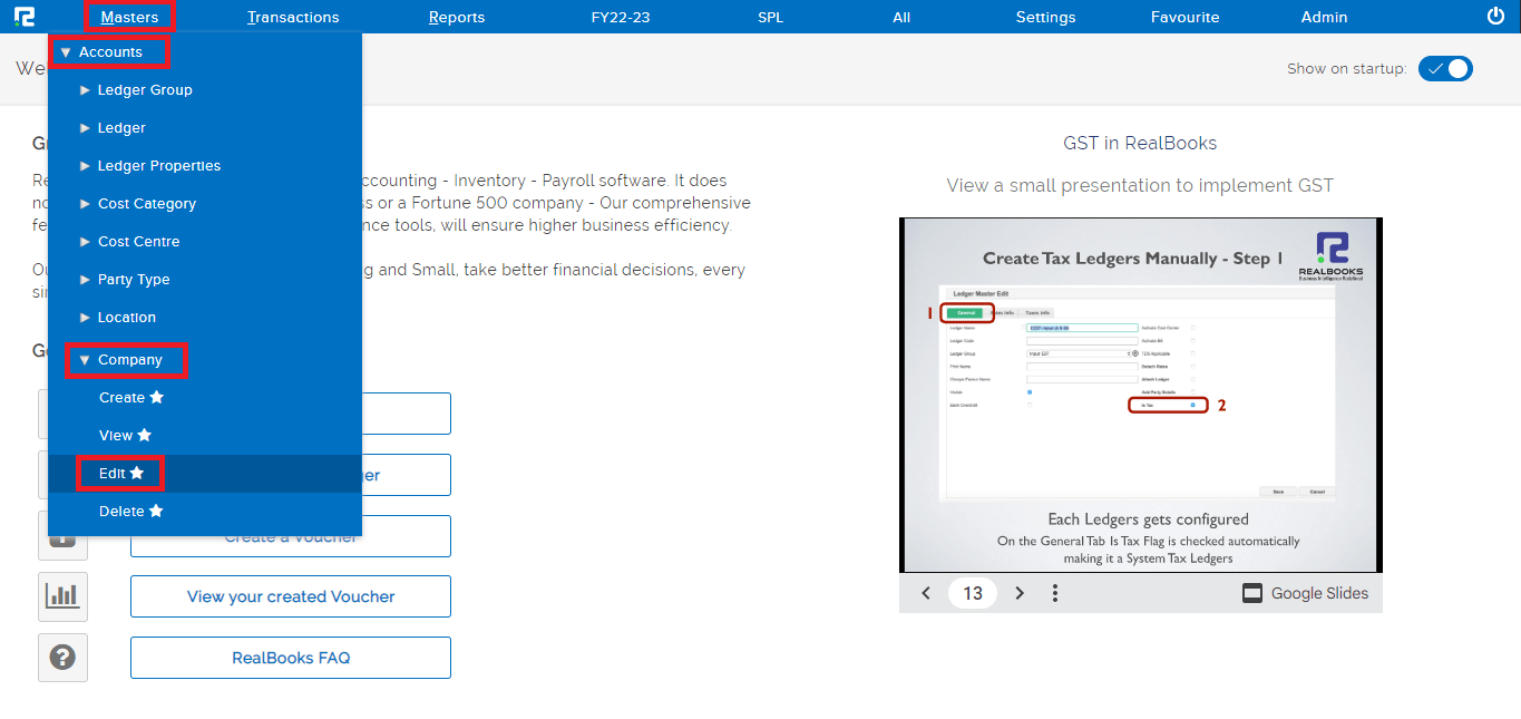 STEP 1: Go to Masters ⇒ Accounts ⇒ Company ⇒ Edit