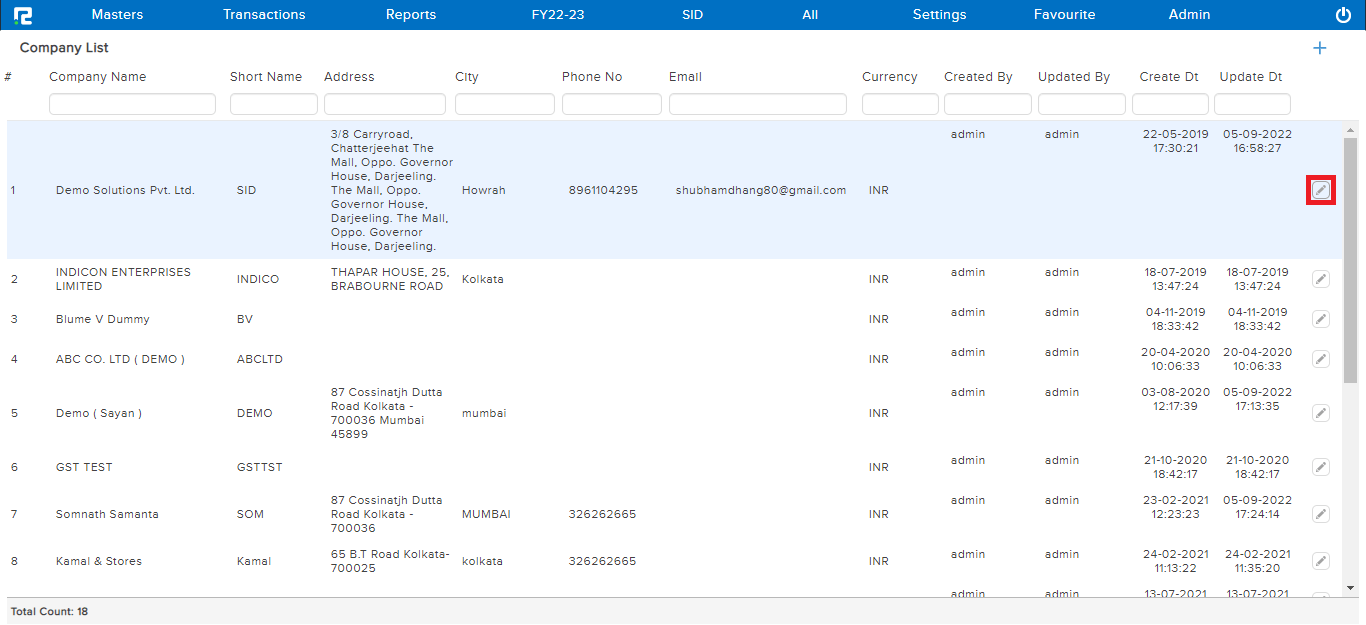 STEP 2: Once you click on edit option, Company List will appear.