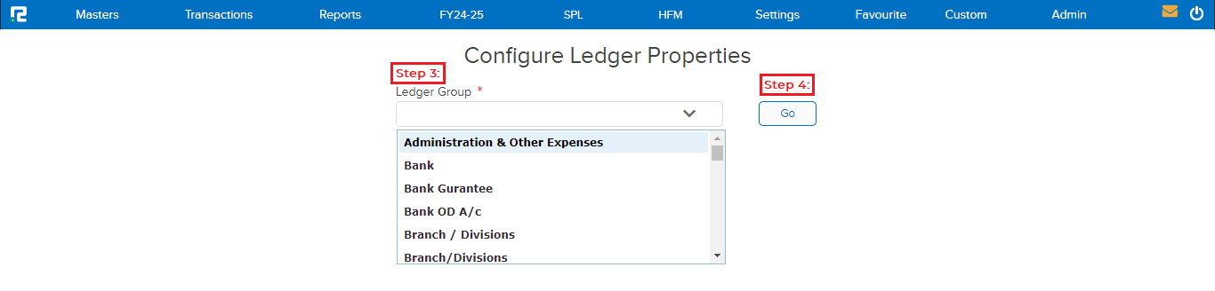 Step 4: After selecting the ledger group, click on the “GO” button to proceed.
