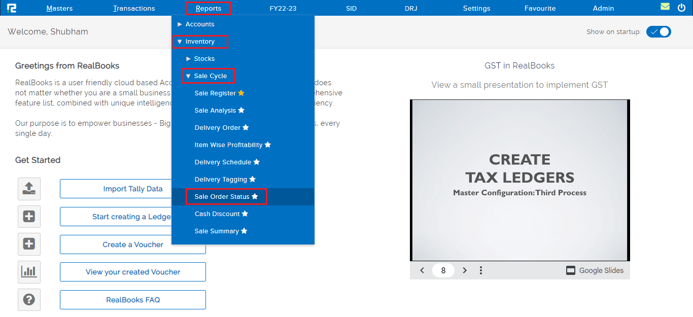 STEP 1: Go to Transactions⇒ Inventory⇒ Sale cycle⇒ Sale Order
