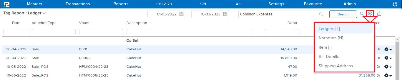 The tag report feature helps the user extract various reports based on the regrouping of ledgers into different categories.